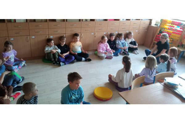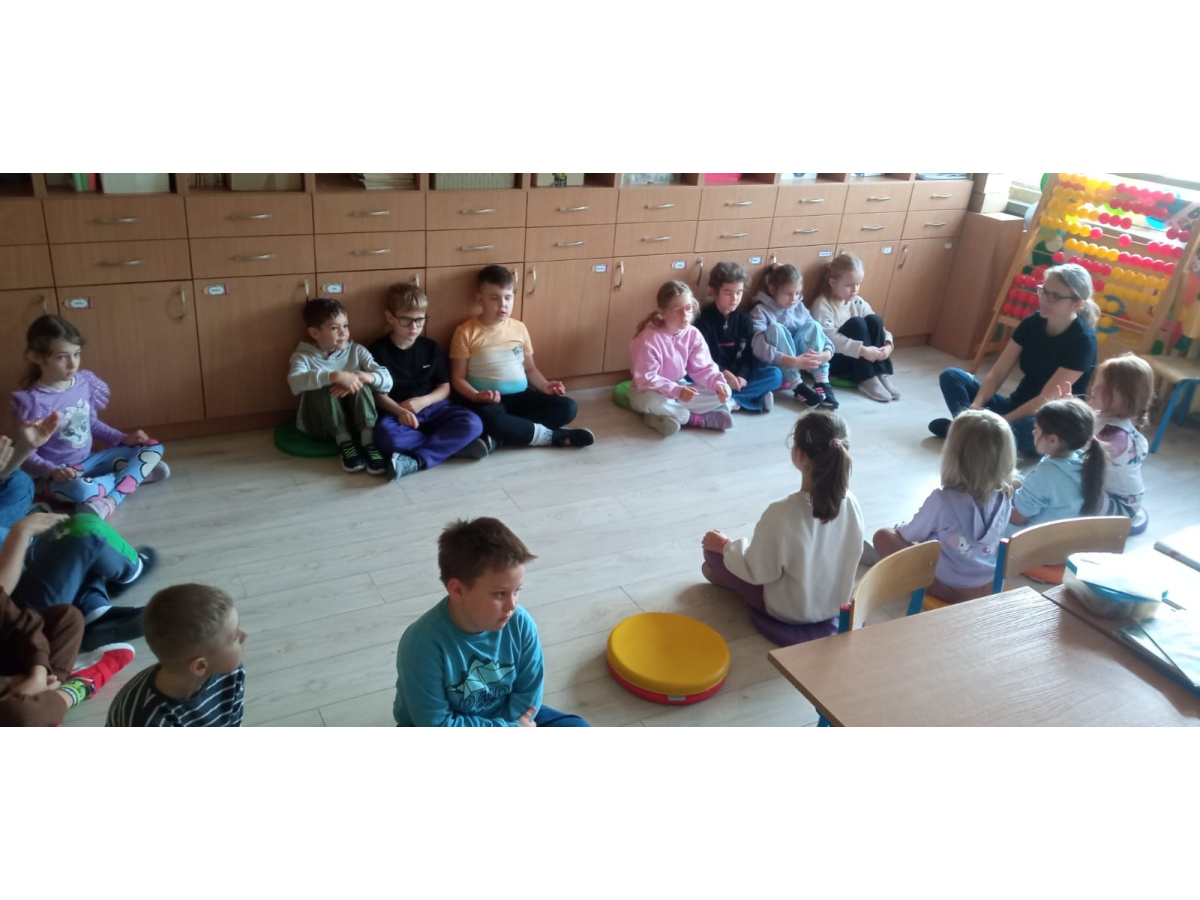 W październiku w klasie 1b zostały przeprowadzone zajęcia z elementami programu „Krople Uważności”. Uczniowie rozwijali umiejętność świadomego kierowania uwagi na bieżący moment oraz poznawali sposoby radzenia sobie z emocjami i stresem. Celem zajęć było kształtowanie uważności, koncentracji oraz empatii wobec siebie i innych. Ćwiczenia opierały się na nagraniu „Spokój i uważność żabki” oraz zabawie – teście uważności pt. „ Ja mam – kto ma?”. Uczniowie doświadczyli, że uważność można praktykować w prostych, codziennych czynnościach.